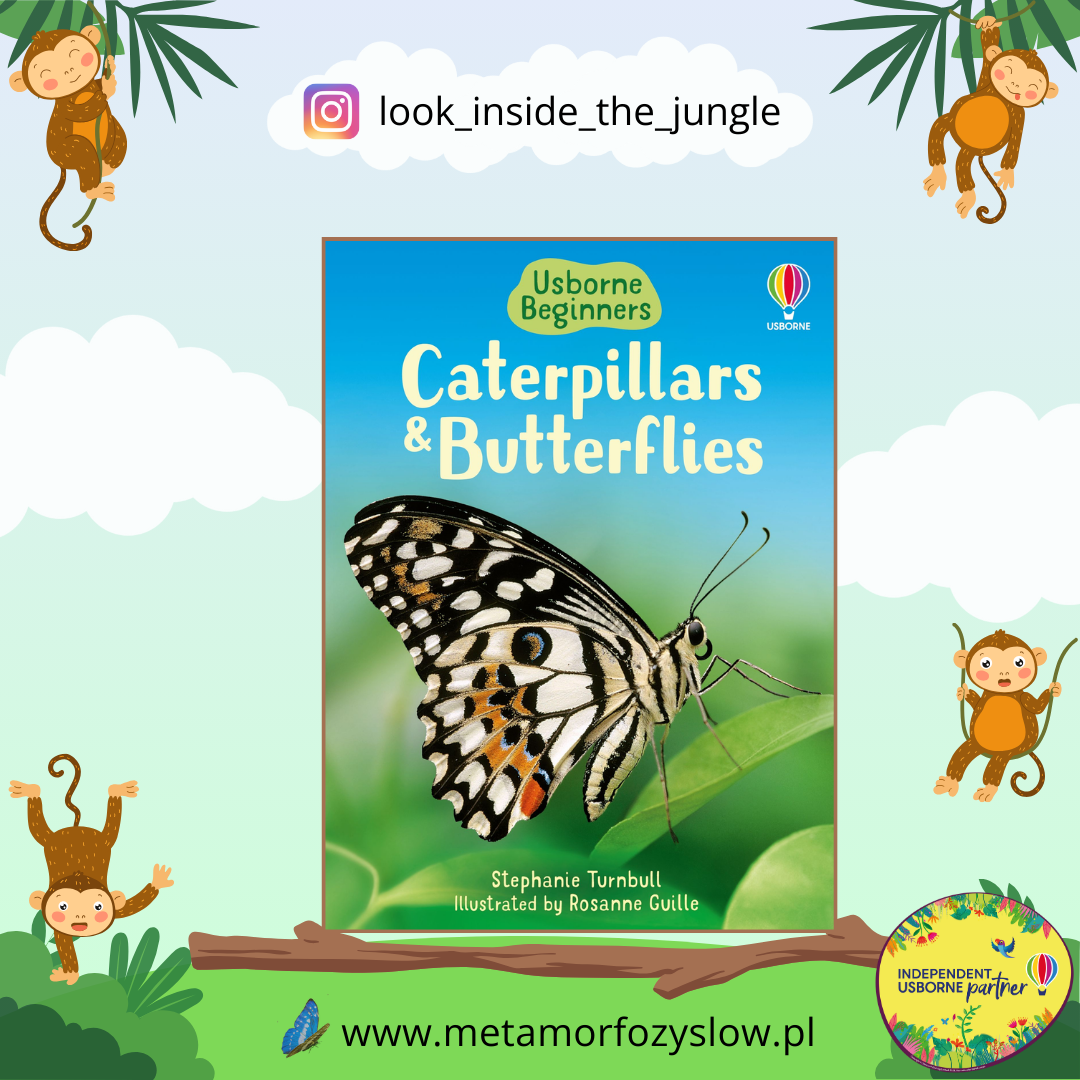 Caterpillars and Butterflies – książka popularnonaukowa o motylach dla dzieci w wieku szkolnym. Realistyczne ilustracje, prosty tekst ułatwiający naukę czytania po angielsku, zbiór linków z materiałami rozszerzającymi treść książki, słowniczek z trudniejszymi pojęciami oraz indeks na końcu książki.