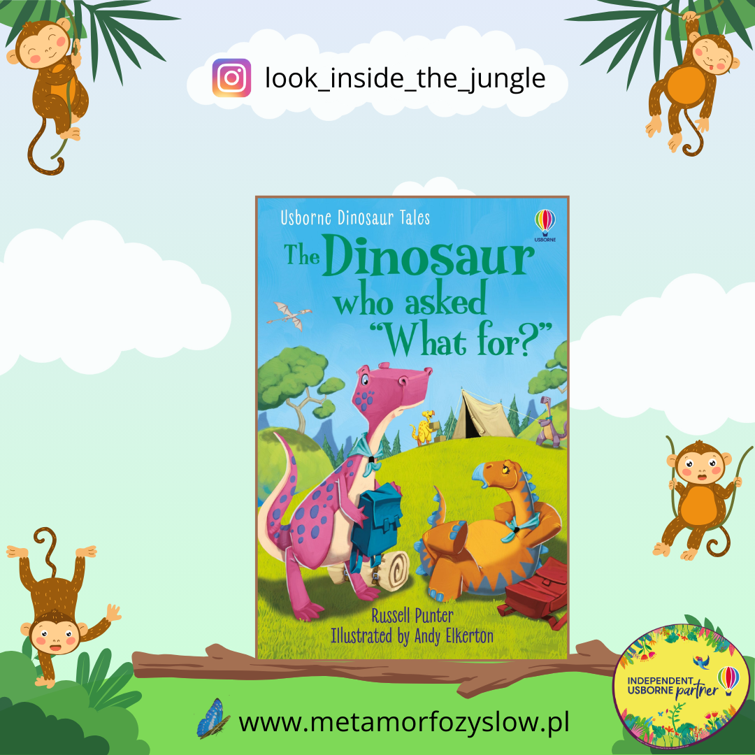Dinosaur Tales: The Dinosaur who asked 'What for?' – książka z serii Usborne Dinosaur Tales w twardej oprawie. Opowieść o leniwej dinozaurzycy, Daisy, która wybrała się pod namioty z członkami Klubu Odkrywców Doliny Dinozaurów, ale nie chciało jej się włączać w grupowe aktywności. Historia z morałem dla dzieci w wieku szkolnym. Książka po angielsku z programu do nauki czytania.