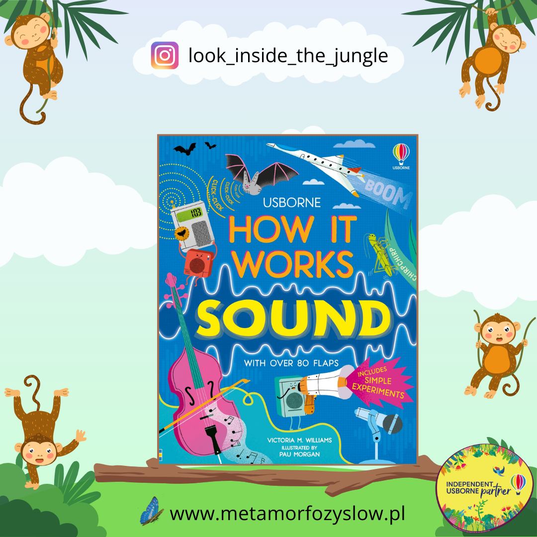 How It Works: Sound – dzięki tej książce świat dźwięków poznasz od zupełnie innej strony. Przekręcaj strony i podnoś klapki, by odkrywać ciekawostki naukowe o otaczających nas dźwiękach. Z tej książki dowiesz się m.in., dlaczego w przestrzeni kosmicznej panuje głównie cisza; nagranie swojego głosu brzmi dziwnie. Książka po angielsku dla dzieci w wieku szkolnym wydawnictwa Usborne. Do książki autorzy przygotowali zbiór linków z dodatkowymi materiałami.