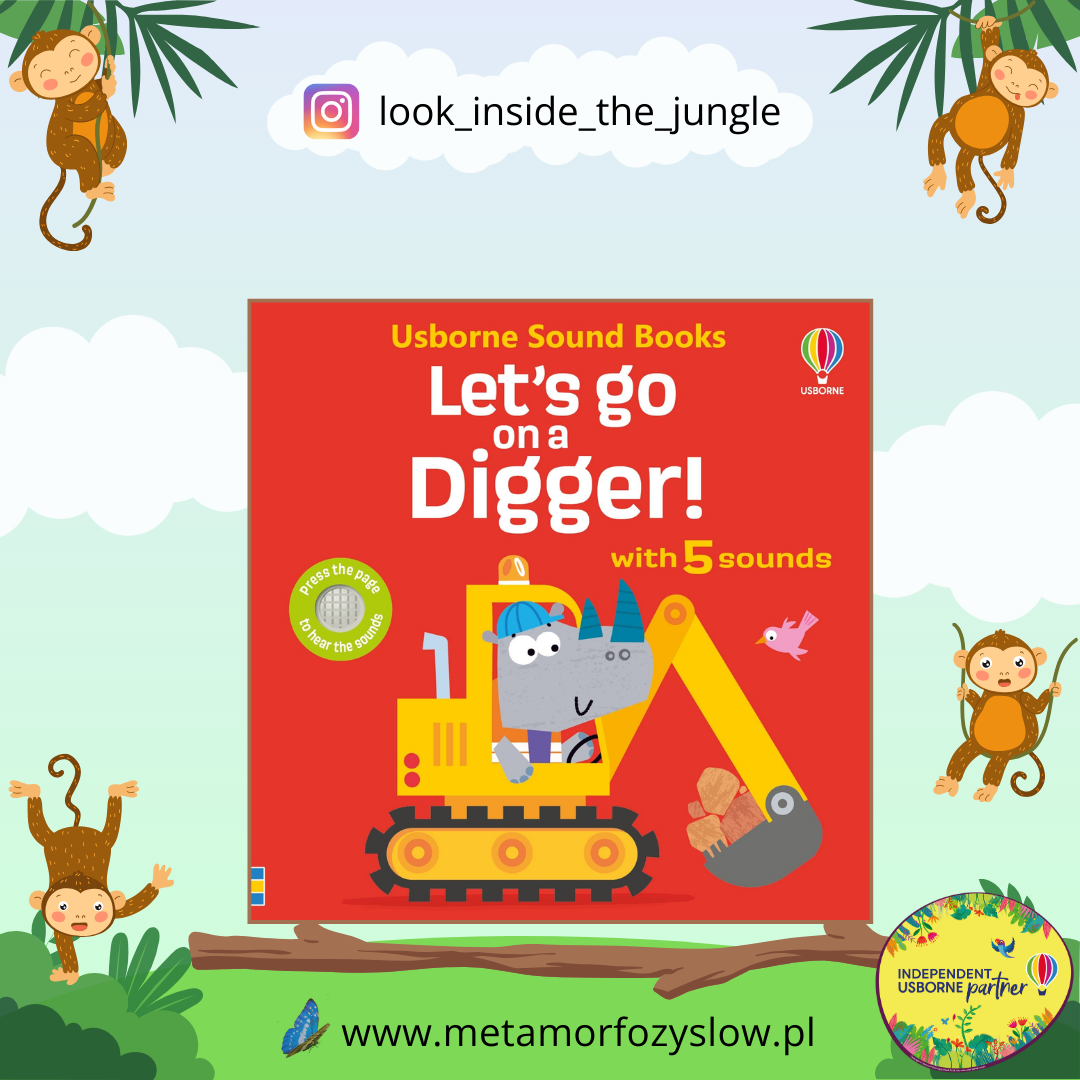 Let's go on a Digger to gratka dla małych miłośników koparek. Ta niewielka książka z realistycznymi odgłosami pojazdów przeniesie dziecko na plac budowy. Krótkie fragmenty tekstu opisują prace, jakie wykonuje koparka na budowie.