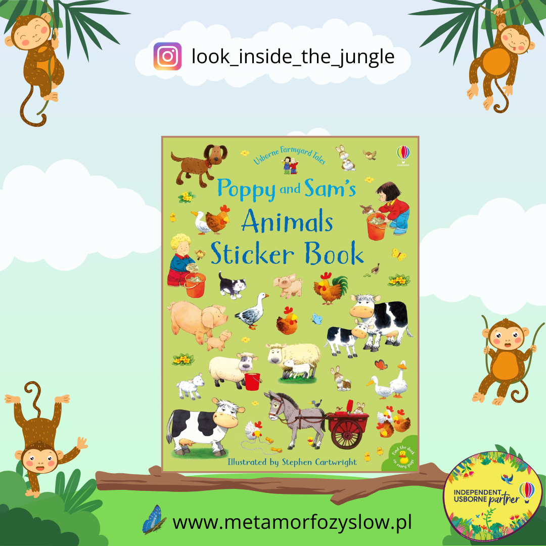 Poppy and Sam's Animals Sticker Book przeniesie dziecko do gospodarstwa, w którym mieszka rodzeństwo Poppy i Sam z rodzicami. Dzięki tej książce dziecko pozna też zwierzęta żyjące na Apple Tree Farm. Na każdej rozkładówce znajduje się krótki tekst po angielsku, scenka z gospodarstwa do uzupełnienia naklejkami.