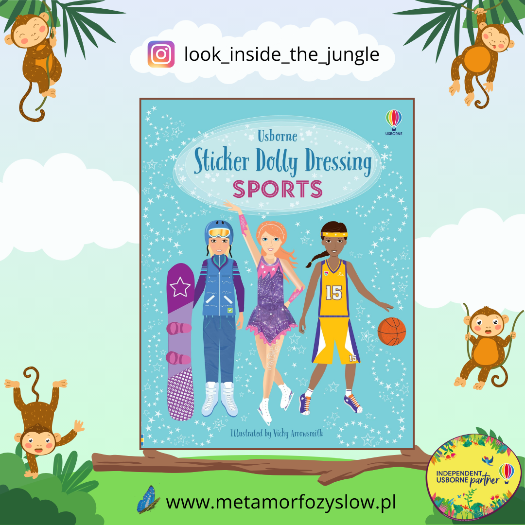 Sticker Dolly Dressing Sports – wyklejanka po angielsku o tematyce sportowej. Książka dla dzieci w wieku przedszkolnym. Na każdej rozkładówce znajduje się scenka związana z inną dyscypliną sportu. Publikacja wydawnictwa Usborne.