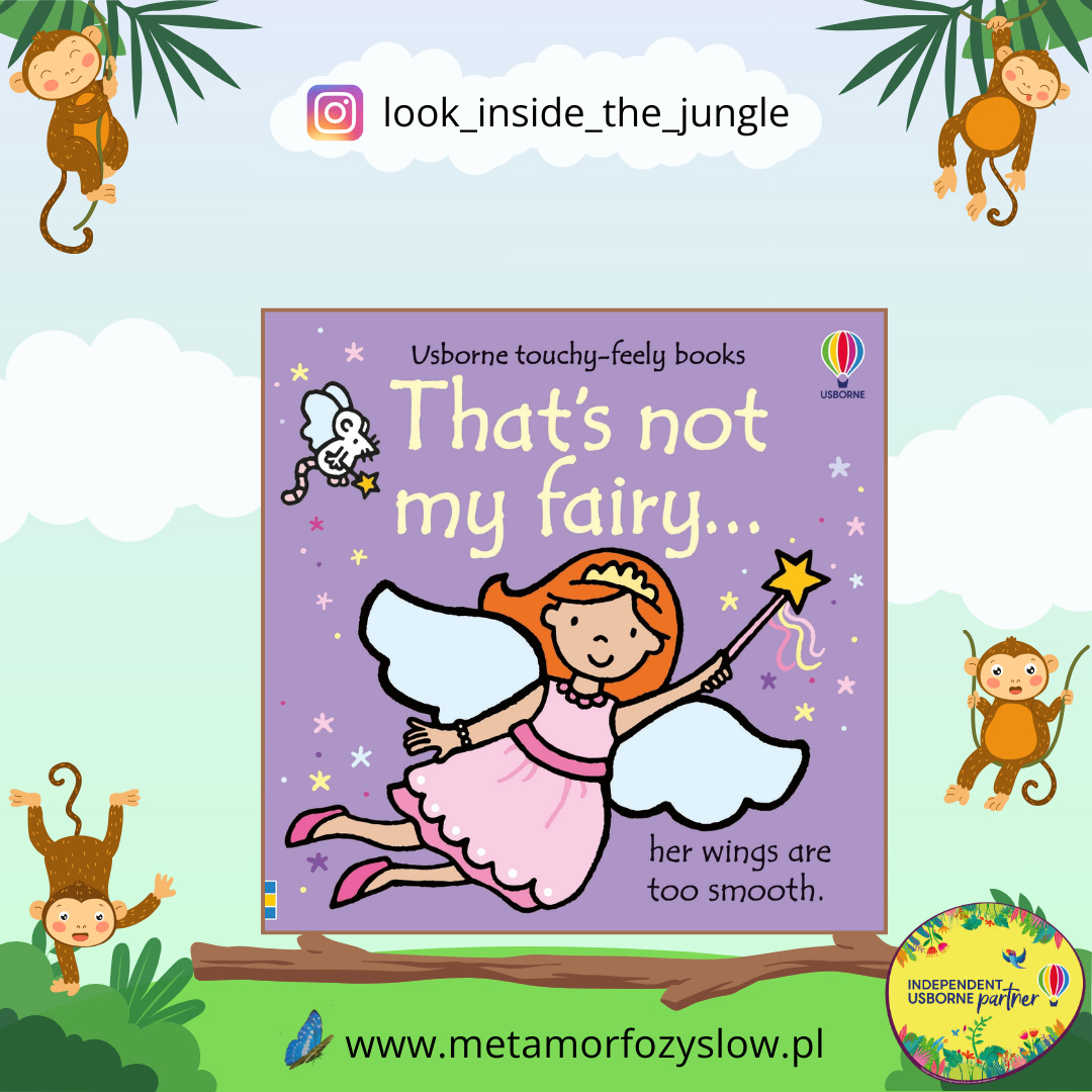 That's not my fairy… – kartonowa książka dla najmłodszych z elementami sensorycznymi. Na każdej stronie maluszek znajdzie postać wróżki z wyraźnymi konturami i jeden element dotykowy. Dziecko uczy się znaczenia przymiotników przez skojarzenia sensoryczne oraz poznaje pierwsze słowa i zdania po angielsku.